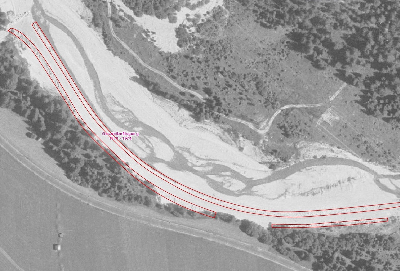 Im Lauf der letzten Jahrzehnte hat sich der Grundbach immer mehr im nördlichen Bachbett eingetieft und erodiert dort das orographisch rechte Bachufer. Das ursprüngliche Bachbett im Süden ist teilweise schon zugewachsen und wird nur noch teilweise bei Hochwasser überflutet. Mit Flussbausteinen wird die Böschung gesichert. Der Grundbach wird wieder in sein altes Bachbett geleitet.