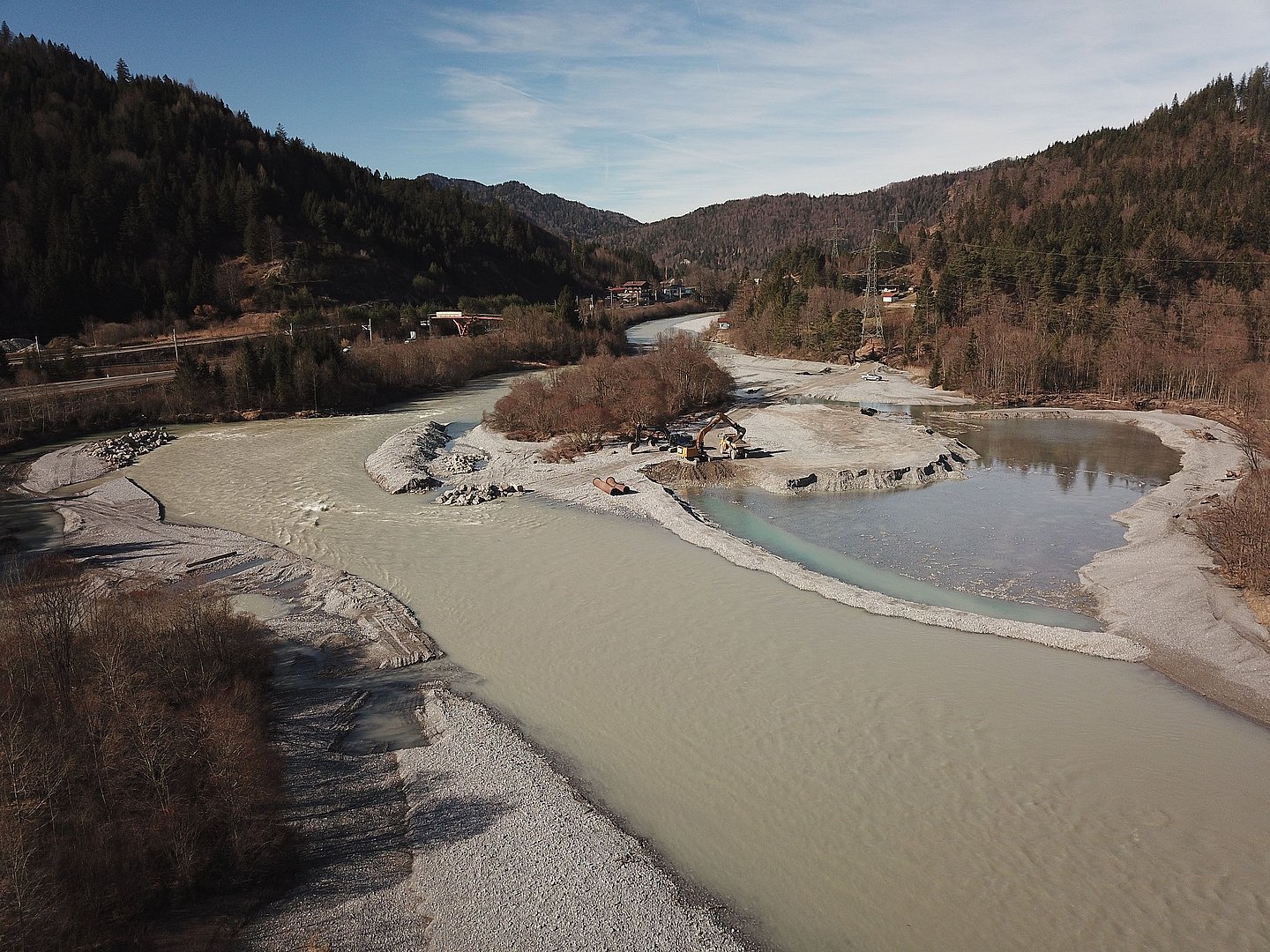 Im Ortsteil Walchen (Gemeinde Steeg) , ca. auf Höhe des Gasthaus Styrolerhof (vormals Tannenhof), hat sich der Lech im Lauf der letzten Jahre immer mehr Erdreich von der Uferböschung geholt. Direkt an der Böschung angrenzend verläuft der Lech Wanderweg und der Schmutzwasser-Regionalkanal. Ebenfalls ist in diesem Bereich steht ein Strommasten des Elektrizitätswerk Reutte. Vor ca. 5 Jahren mussten wir an dieser Stelle schon einmal den Wirtschaftsweg (zum Schutz des Kanal und der Stromleitung) provisorisch flicken. Im Zuge von diesem Instandhaltungsprogammes wird nun das linke Ufer auf einer Länge von ca. 170m mit einem Deckwerk verbaut. Somit ist der Schmutzwasserkanal und die Stromleitung langfristig vor einer Unterspülung bzw. Freilegung des Leches geschützt. Baubeginn: 07.01.2020 Bauende: 17.02.2020