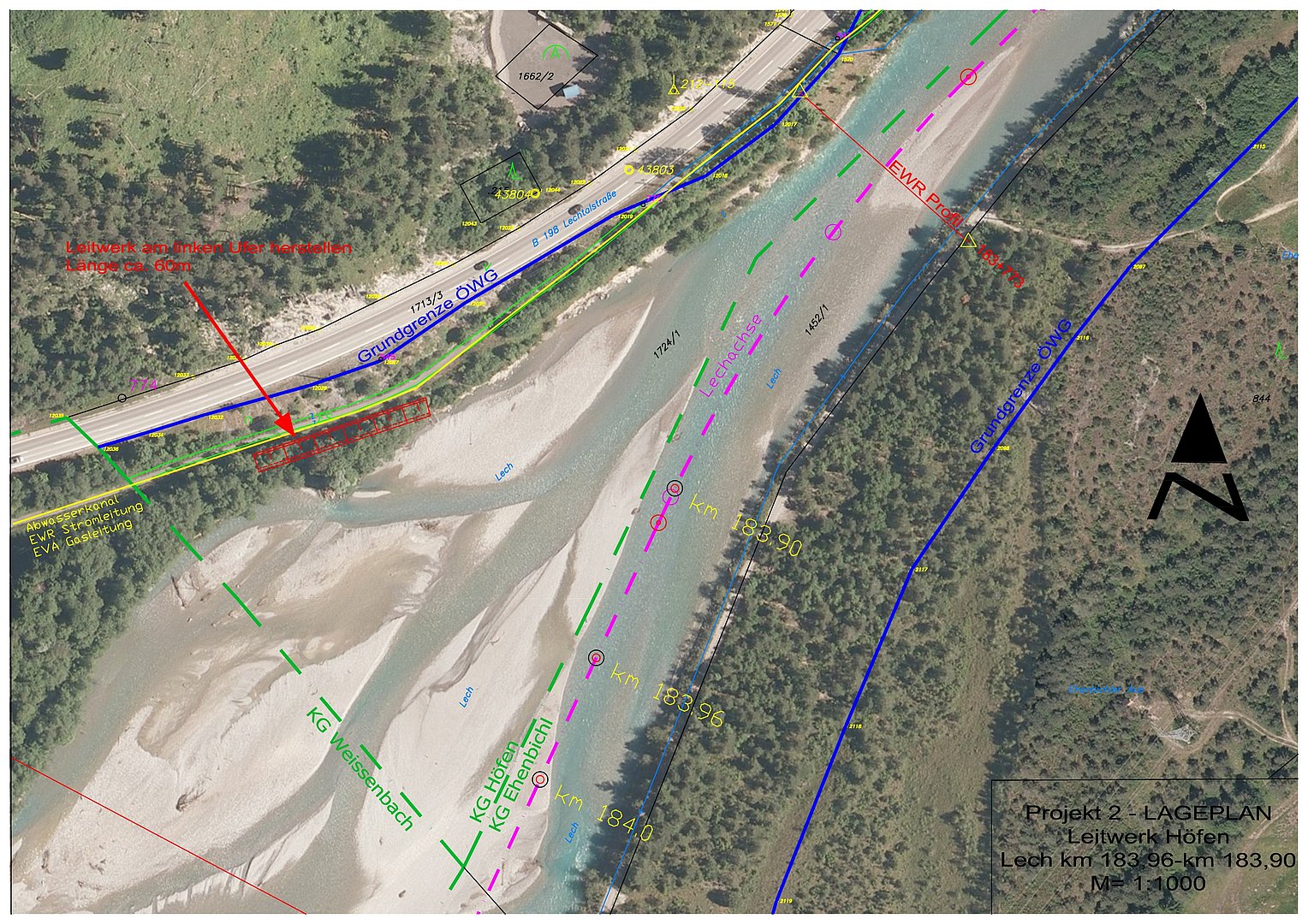 Im Gemeindegebiet Höfen verläuft neben der Bundesstraße B198 ein asphaltierter Rad- und Wanderweg. Im Bereich bei Lech km 183,96 und 183,90 wurde der Damm am linken Ufer beschädigt. Der im Weg befindliche Schmutzkanal wurde schon einmal unterspült und provisorisch saniert. Im Zuge der Erhaltung wird das linke Ufer von ca. 60 m Länge durch ein Deckwerk gesichert.