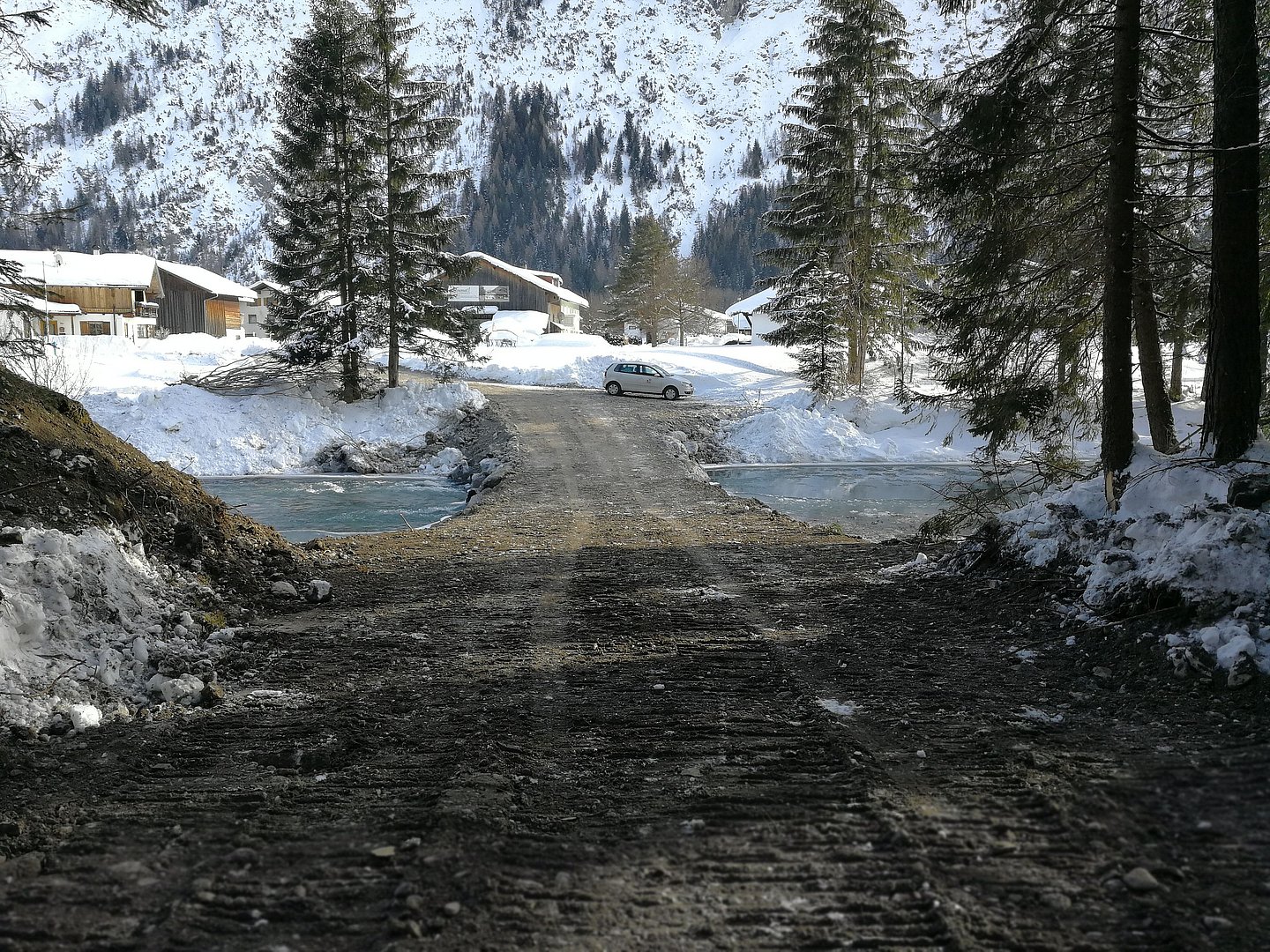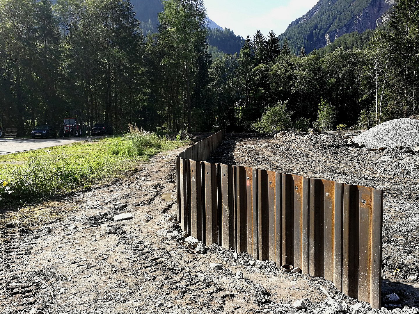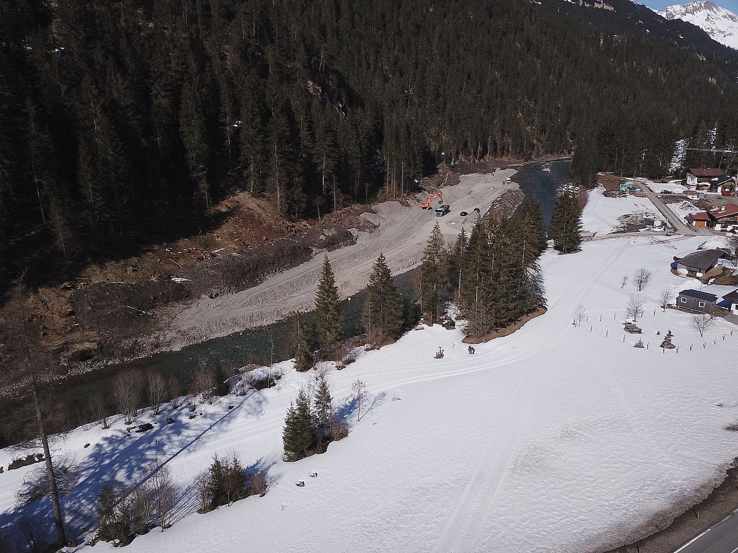 Dieser Damm schützt den Gewerbebetrieb Wolf sowie die Lechtal Bundesstraße. Unterhalb der Brücke wird das Siedlungsgebiet ebenfalls durch einen ca. 230 m langen Damm geschützt. Am linken Lechufer, gegenüber des Siedlungsgebietes, wird der Flussquerschnitt des Lechs um ca. 1 ha aufgeweitet. Durch diese Maßnahme werden im Hochwasserfall die Hochwasserspiegellagen abgesenkt.