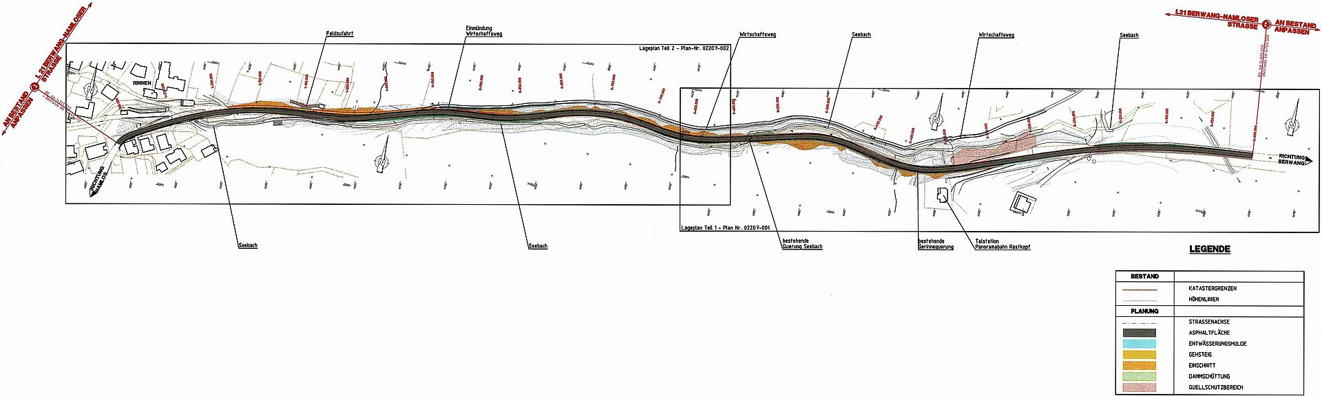 Der Planungsbereich für die L 21 Berwang-Namloser Straße erstreckt sich von Straßenkilometer 5,45 bis 6,30 über eine Länge von 850 m. Das Baulosanfang schließt unmittelbar an das inzwischen fertig gestellte Baulos Ortsdurchfahrt Berwang an. [mehr...]