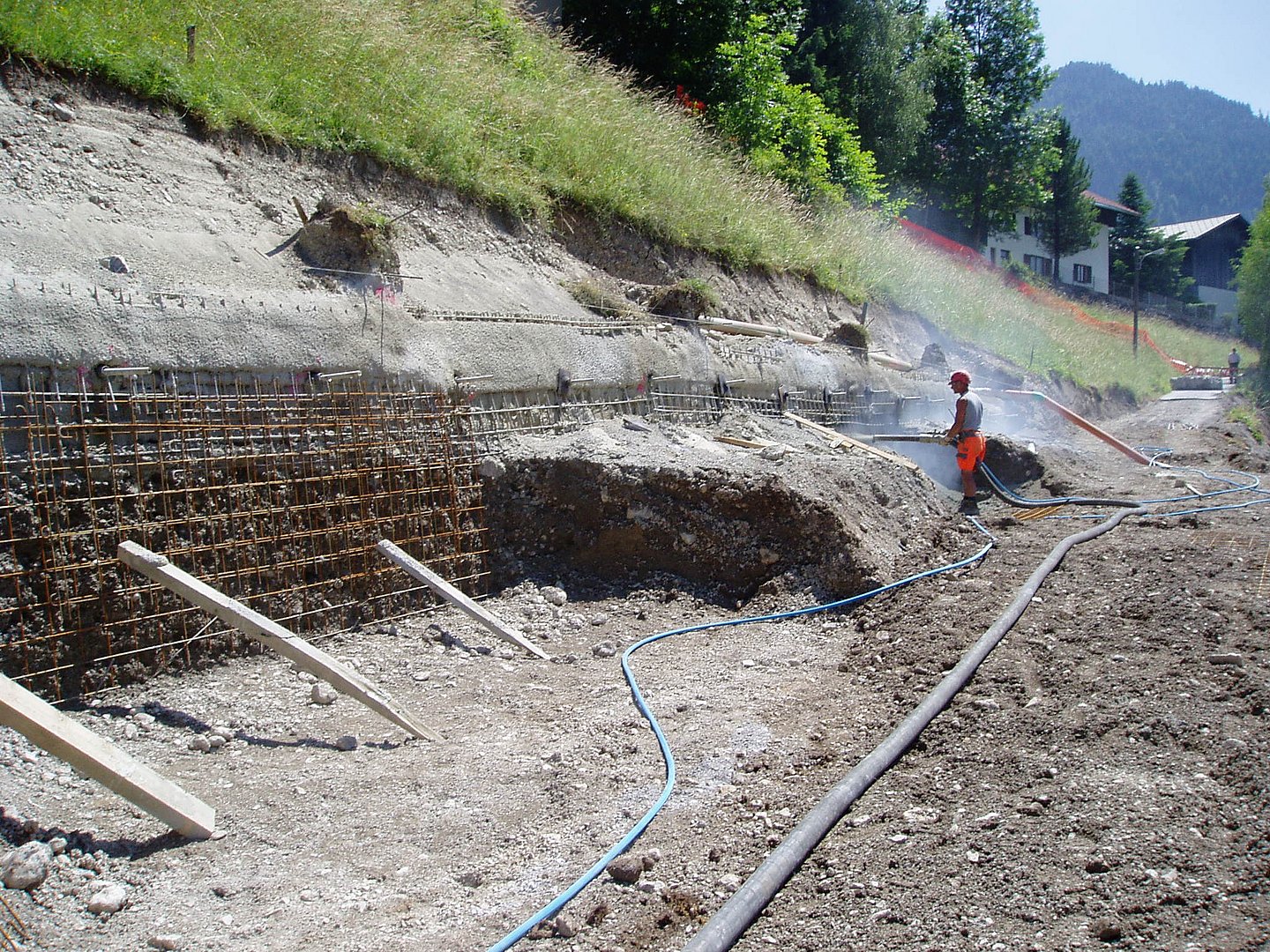 Die Sanierung der bergseitigen Stützmauer umfasst die Herstellung neuer geankerter Wandabschnitte sowie Ausbesserungsarbeiten an im Bestand verbleibender Mauerwerksfugen. [mehr...]