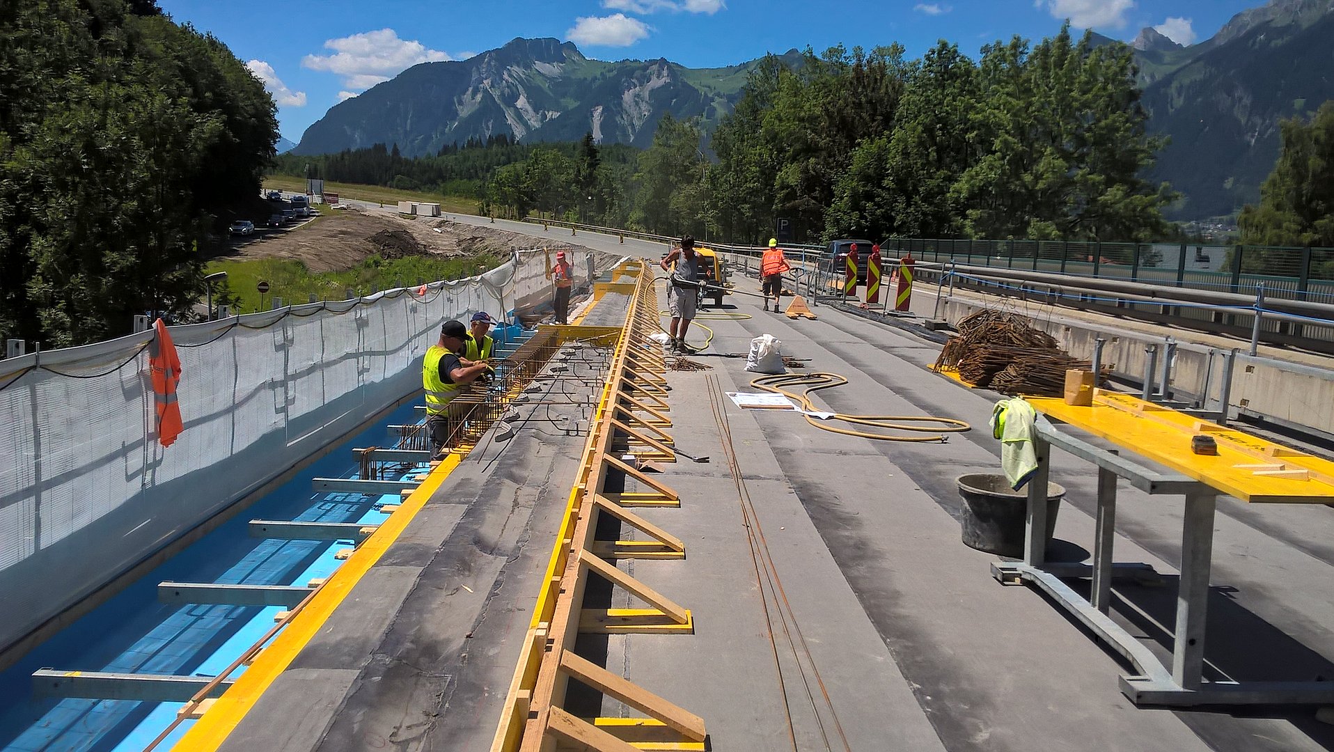Die im Jahr 1963 errichtete „Vorderhornbacher Lechbrücke“ muss generalsaniert werden. Dabei werden die Tragwerksabdichtung, die Randleisten, die Rückhaltesysteme, die Entwässerungs-einrichtungen, die Fahrbahnübergänge und der Fahrbahnbelag erneuert.Außerdem wird das Tragwerk durch einen 10 cm starken Aufbeton verstärkt, der mit dem bestehenden Tragwerk kraftschlüssig verbunden werden muss. [mehr...]