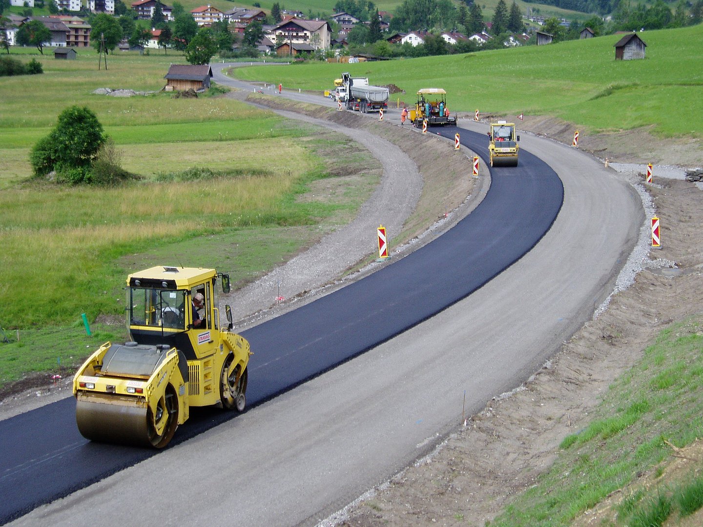 Der Fahrbahnaufbau entspricht der Lastklasse II gemäß dem Leitfaden „Oberbaukatalog“ der Abteilung Straßenbau. Dabei sind 2 Lagen bituminöse Tragschichten in der Stärke von 8 bzw. 7 cm und eine 3 cm starke Deckschicht vorgesehen.