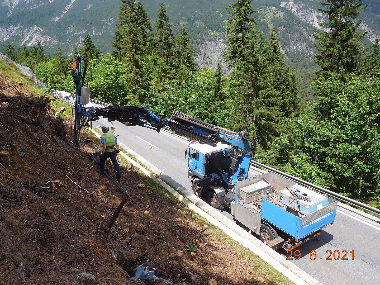 Bei einem Steinschlagereignis stürzten Anfang April 2021 in der Gemeinde Biberwier im Bereich „Aufstieg Blindsee“ Felsmaterial und Steine mit einer Größe von bis zu 0,5 Kubikmetern auf die B 179 Fernpassstraße. Die Begutachtung durch die Landesgeologie ergab, dass für eine größtmögliche Sicherheit der VerkehrsteilnehmerInnen umfassende Sicherungsmaßnahmen durchzuführen sind. Daher werden nunmehr 600 Laufmeter Steinschlagschutzzäune mit einer Höhe von vier Metern und weitere 200 Laufmeter mit einer Höhe von fünf Metern errichtet.