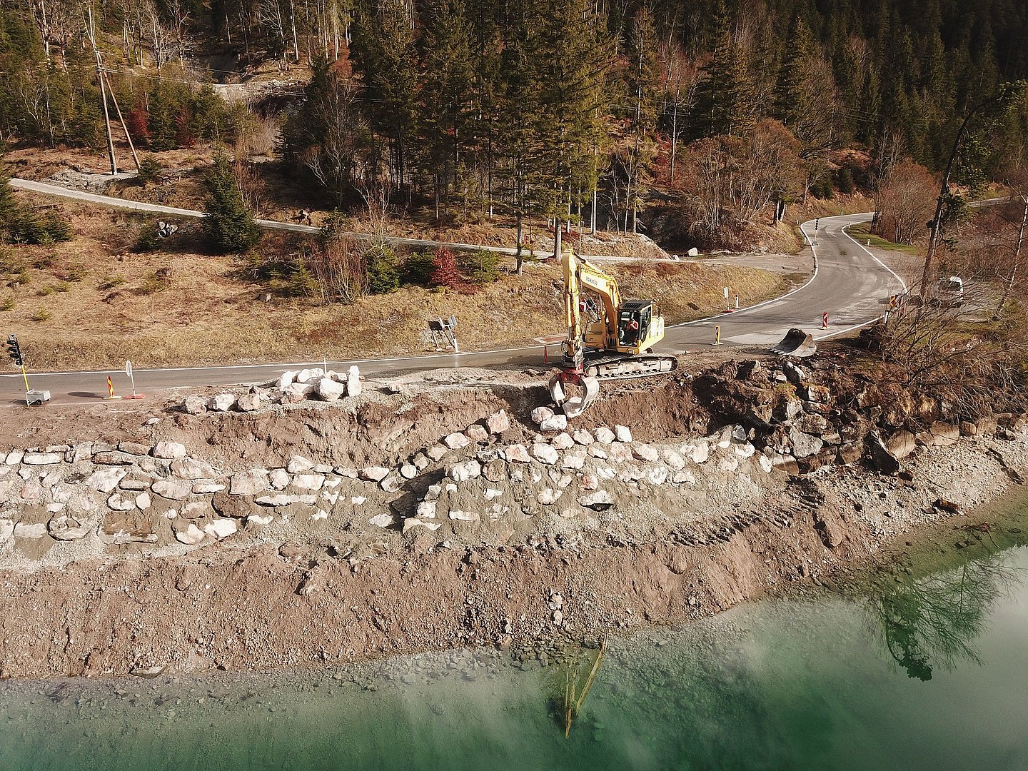 Der Wellenschlag des Plansee hat der Ufermauer entlang der L 255 Planseestraße stark zugesetzt, daher muss diese nun sukzessive erneuert werden. Die Arbeiten werden sich über mehrere Jahre erstrecken und erfolgen jeweils bei abgesenkten Seespiegel im Spätwinter.