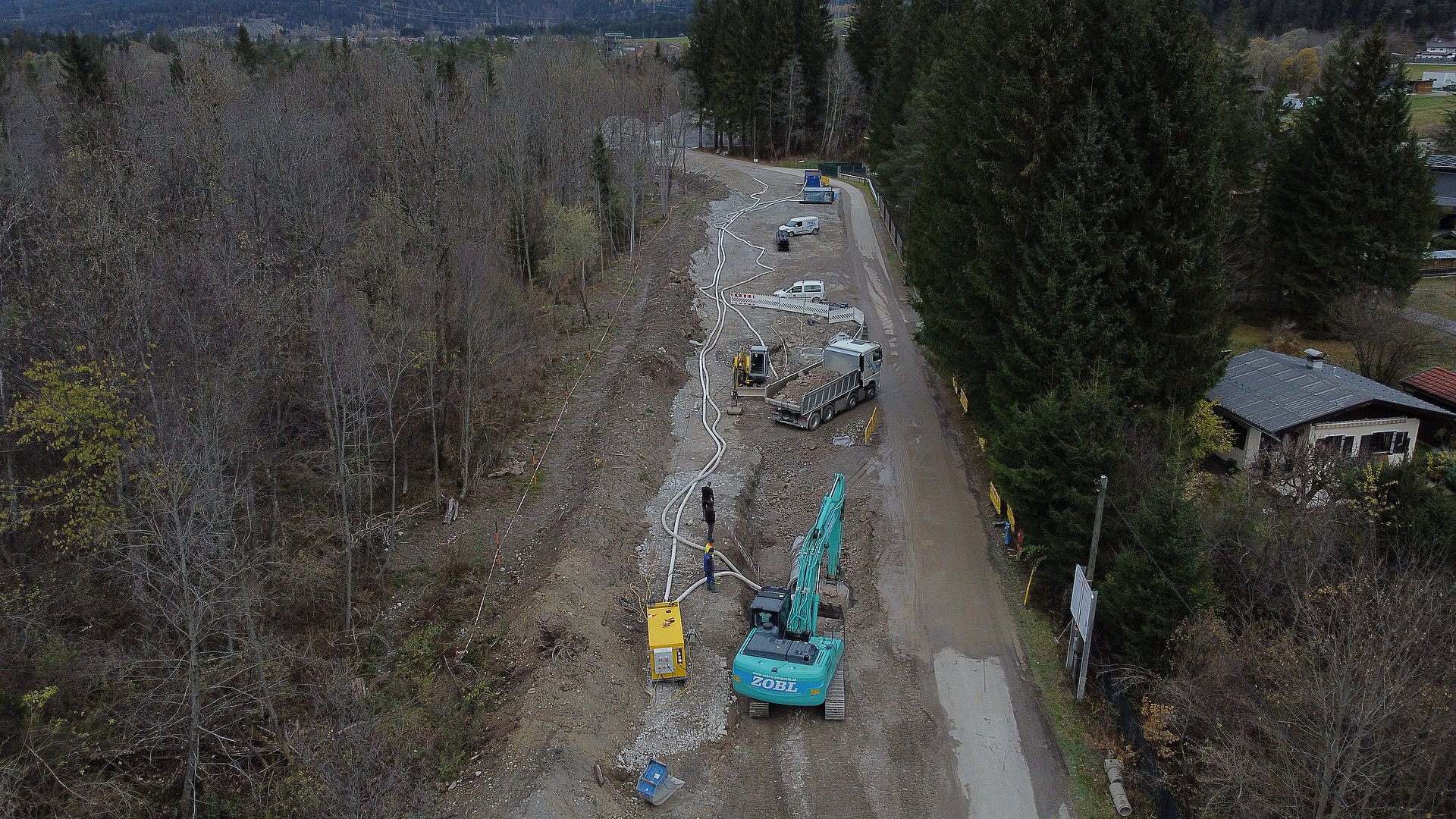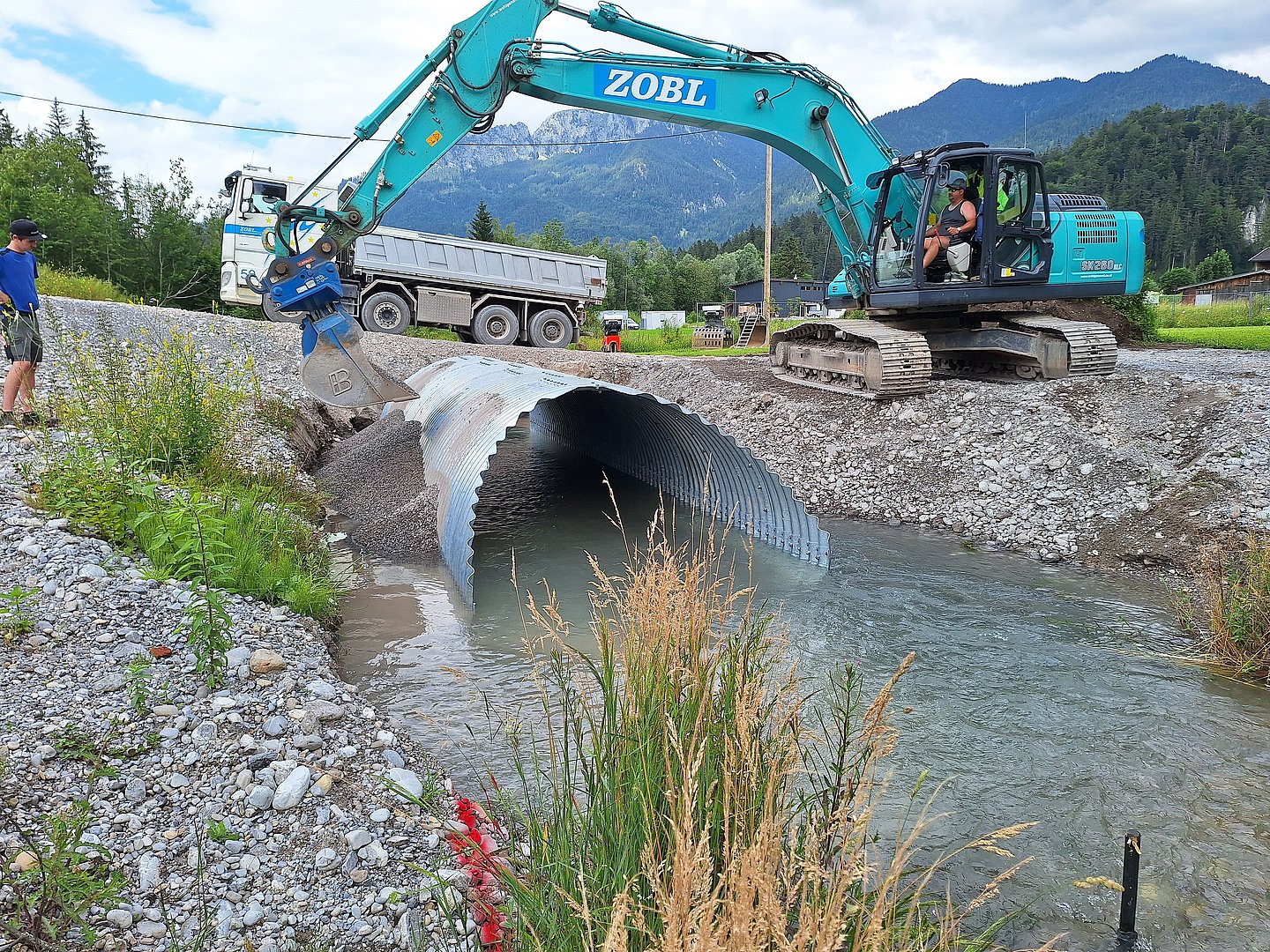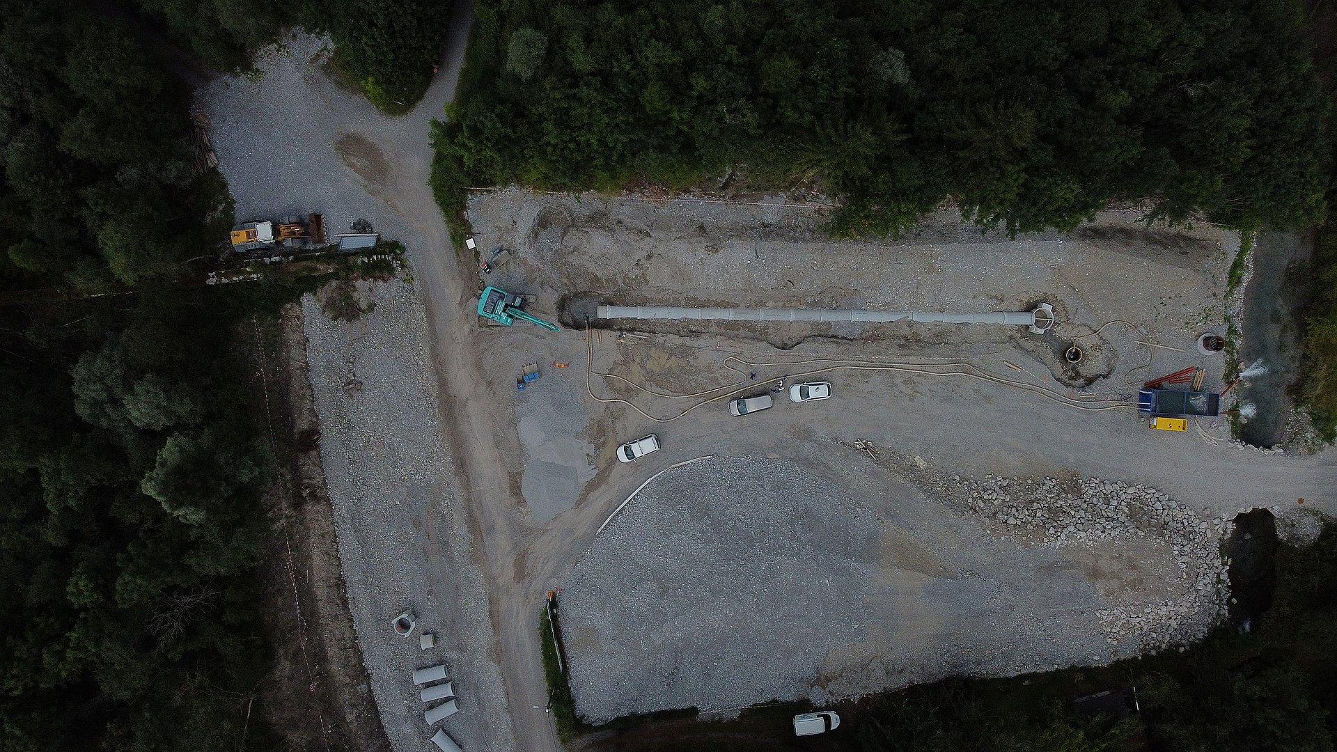 Insgesamt werden in diesem Bauabschnitt ca. 1500 m Betonrohre mit einem Durchmesser von 60cm bis 100cm und ca. 800 m Drainagerohre verlegt. Für den Erddamm werden ca. 25.000 m3 Dammschüttmaterial benötigt.