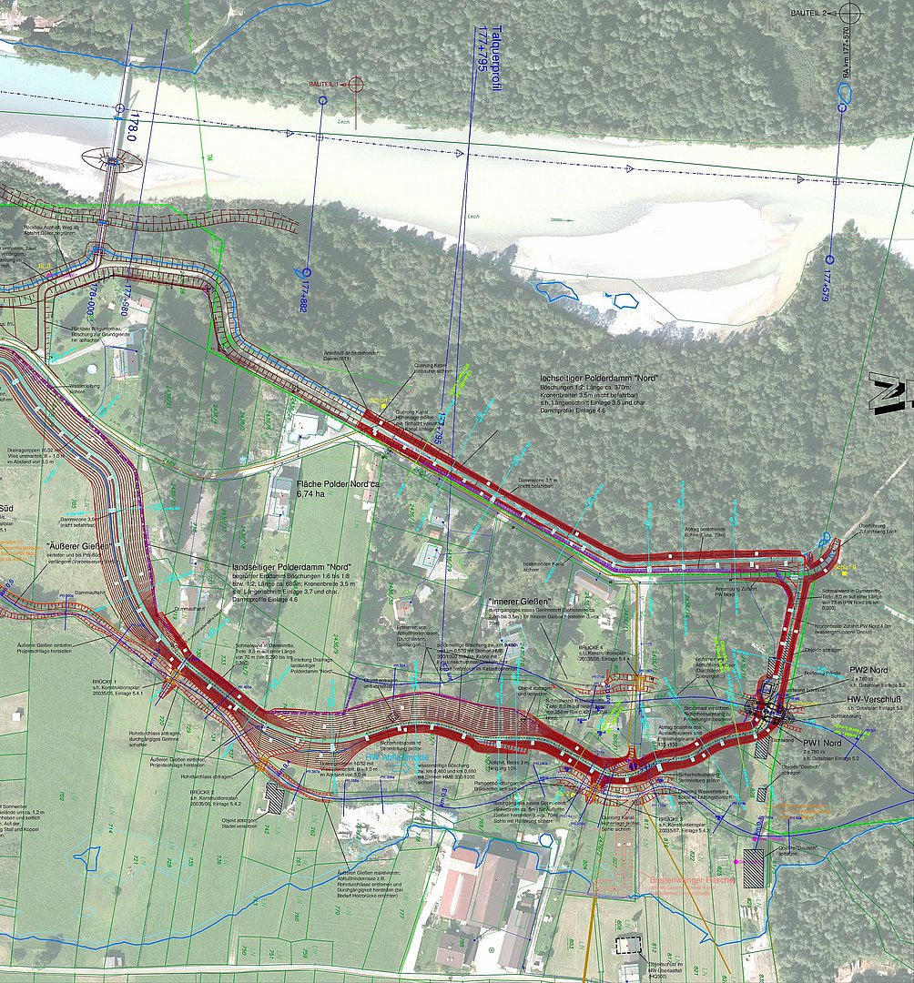 Radwegbrücke sowie einer Aufweitung des Lechbettes. Dieser Projektteil wurde bereits im Jahr 2006 fertiggestellt, bietet jedoch nur einen Schutz gegen ein 20-jährliches Hochwasser.