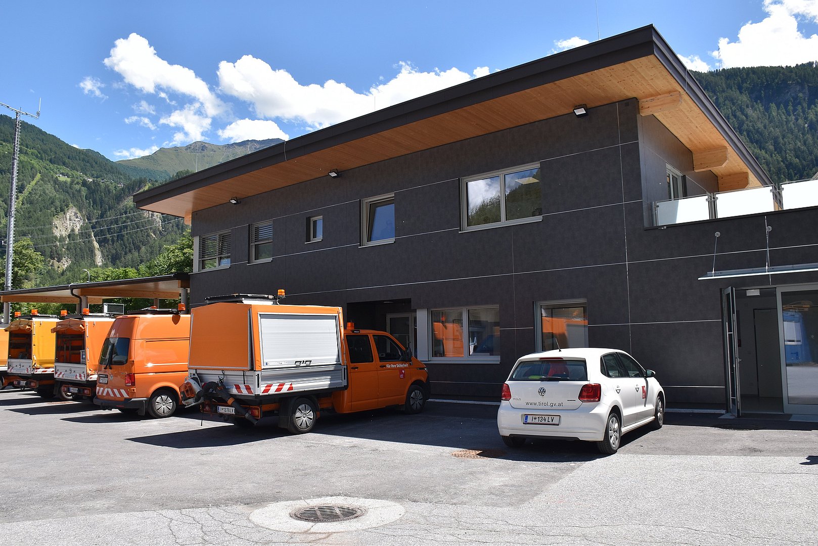 Sicherheit für 150 Straßenkilometern: Die neue Straßenmeisterei Ried im Oberinntal (Bezirk Landeck) wurde nach rund eineinhalb Jahren Bauzeit fertiggestellt. Das moderne zweigeschossige Verwaltungsgebäude mit Pultdach wurde mit Fokus auf Nachhaltigkeit errichtet. Auch eine Photovoltaik-Anlage sowie Elektrotankstellen für Landesfahrzeuge und eine Grundwasserwärmepumpe zählen zur Ausstattung. Insgesamt wurden seitens des Landes in die neue Straßenmeisterei rund 2,9 Millionen Euro investiert.