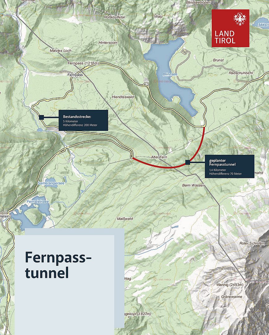 Durch den geplanten Fernpasstunnel kann dieser störungsanfällige Streckenabschnitt zwischen der Haarnadelkurve im Süden und dem Blindsee im Norden umgangen werden. Die 1,4 Kilometer lange Tunnelstrecke ersetzt 4,8 Kilometer Passstraße. Statt 200 Höhenmeter über den Pass werden im Tunnel lediglich 70 Höhenmeter zurückgelegt. Das spart Sprit und hilft der Umwelt.